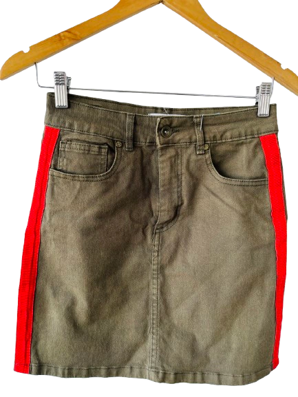 Nombre: POLLERA DE JEAN VERDE CON TIRAS ROJAS